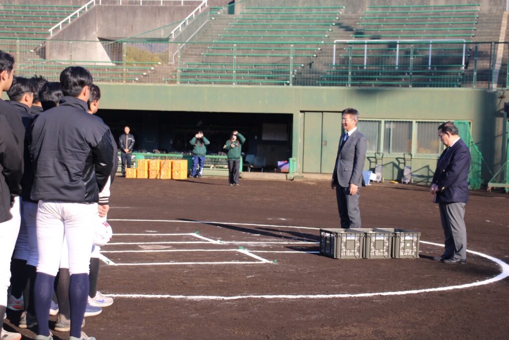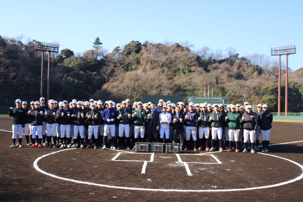 2月14日(土)、春の柔らかな日差しが降り注ぐ金沢文庫キャンパス野球場にて、野球部OB会による「練習球贈呈式」が執り行われました。